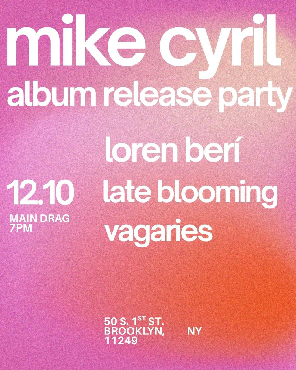 12/10/25 Mike Cyril Record Release w/ Loren Beri / Vagaries / Late Blooming
