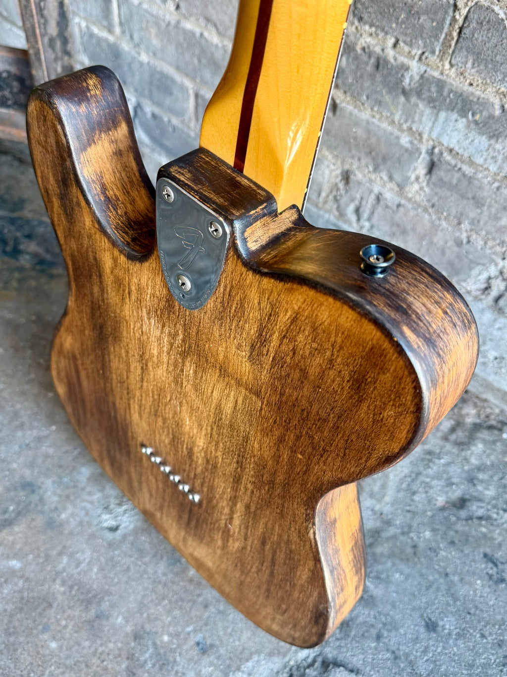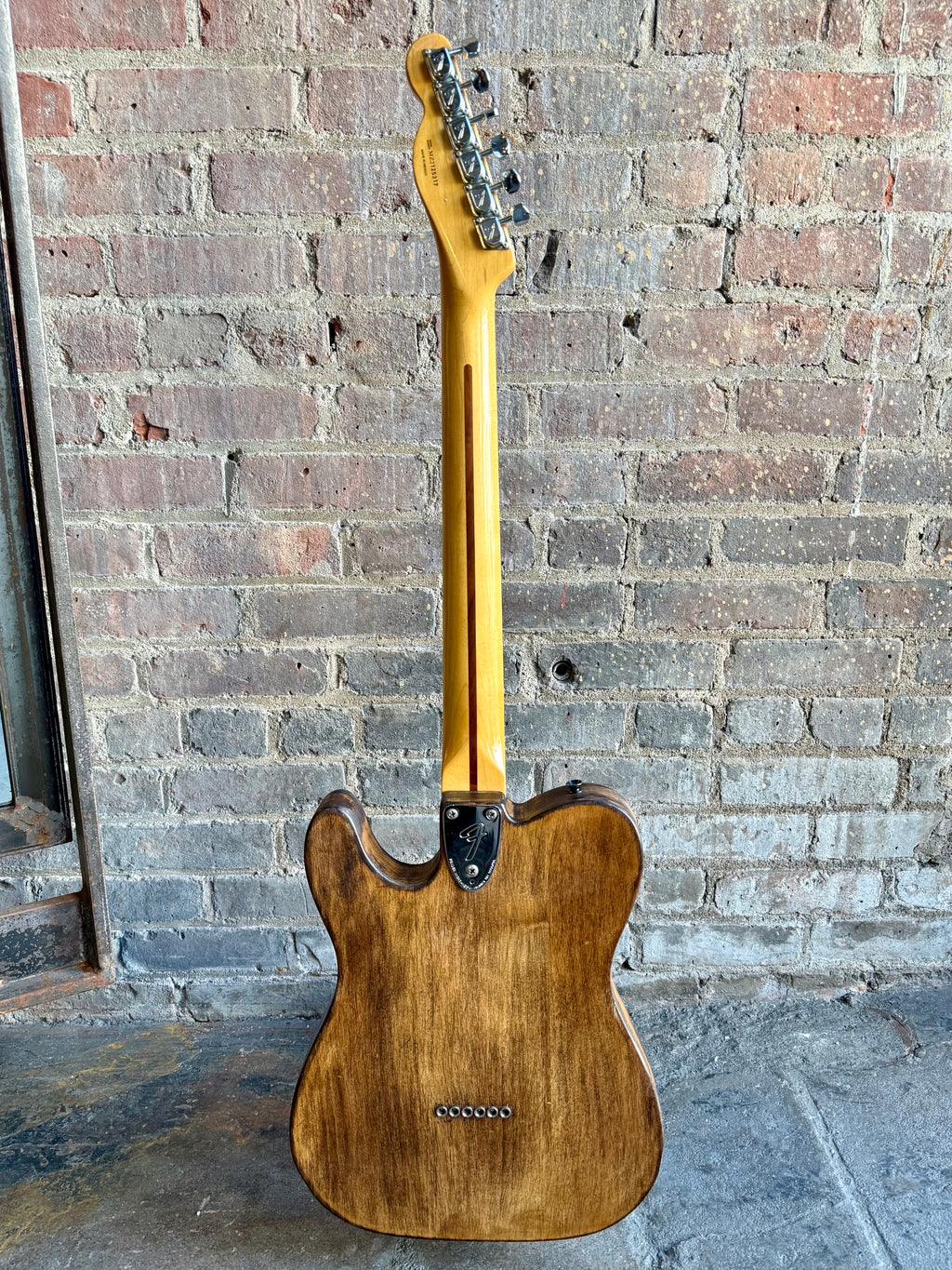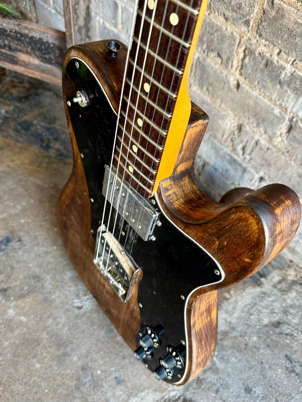 This guitar is light, resonant and has tons of vibe thanks to the home brew “refin”. Some chatter from the fret file on the fingerboard as well but the frets are even and it’s playing great. No case.